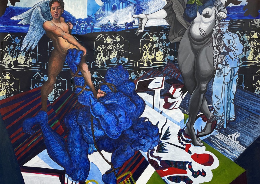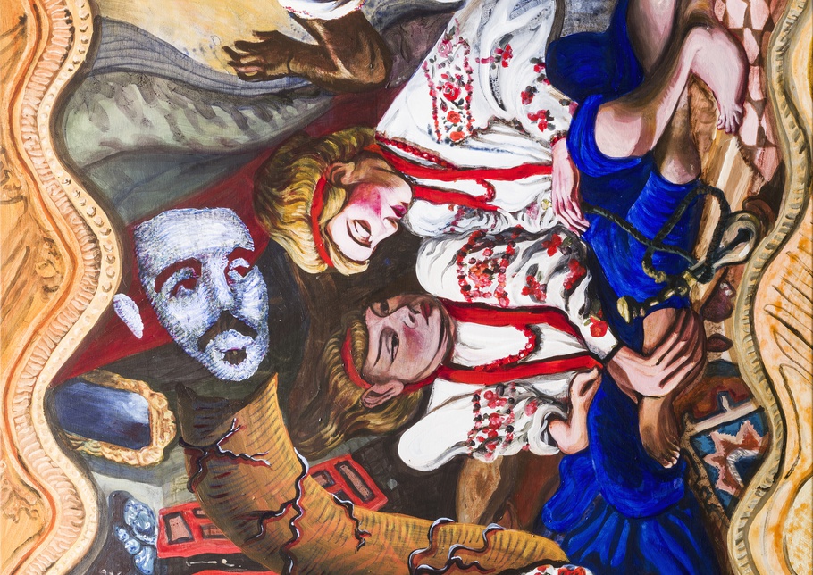 , Kunsthalle MünsterMikołaj Sobczak, Women's Rebellion / Babski bunt (Detail), 2022, Acryl und Collage auf Leinwand, 150 x 100 cm