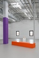 Jihyeok Yang, Wenn die Säule sich auf den Boden legt, 2026, MDF, Lack + Die Dose und der Ball, 2026, Redbulldose, Ball, MDF, Lack. Installationsansicht: Kunsthalle Münster. Courtesy of the Artist. Foto: Kun-stakademie Münster / Hyesung Ryu ↓ TIFF