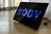 RHO, CHOLERA – I THOUGHT I SHOULD NEVER SPEAK AGAIN, Light and sound installation in collaboration with the vocal ensemble Γλωσσα (glossa), exterior view, Kasseler Kunstverein, February 2021. Photo: Nico Wefers ↓ JPG
