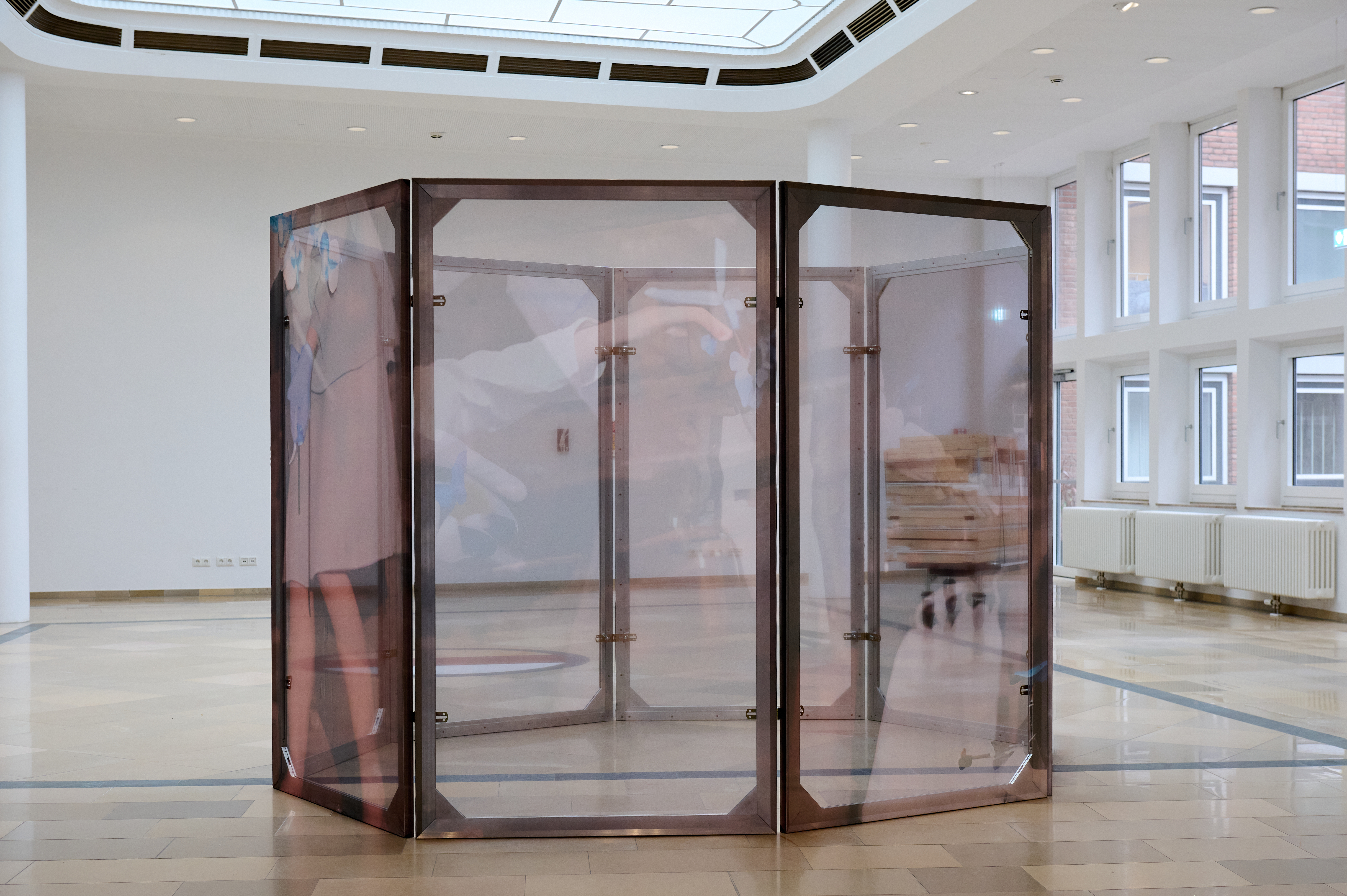 Kanade Hamawaki, Verschwörung fährt ein..., 2022, installation view, Die Grosse, Museum Kunstpalast. Photo: Kanade Hamawaki ↓ JPG