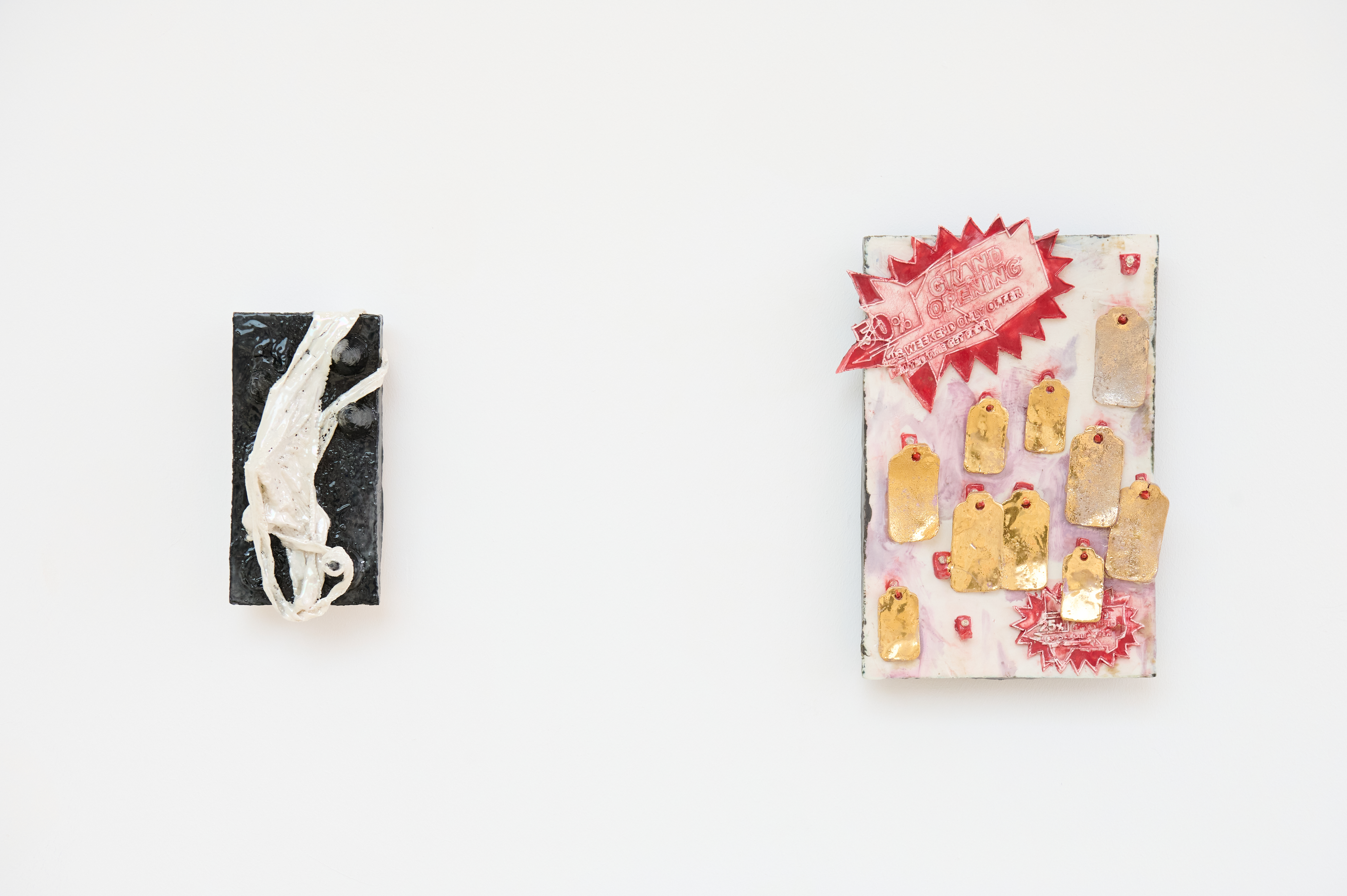 Gaia Vincensini, Stranded thong, 2025, porcelain. Courtesy of the artist and Gaudel de Stampa. + Gaia Vincensini, Golden ticket to nothing, 2025, porcelain. Courtesy of the artist and Gaudel de Stampa. Stadthausgalerie Münster. Photo: Ygor Souza Bahia. ↓ JPG